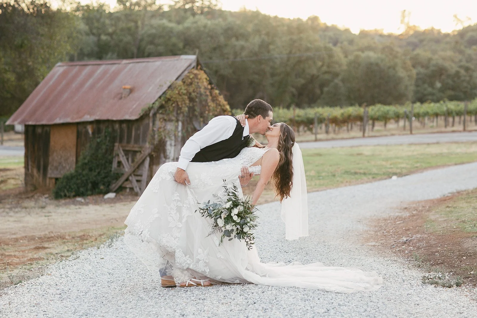 Nestled in the foothills with sweeping views, Airola Road Vineyards is a photographer's paradise. Airola offers picture-perfect moments around every corner, from intimate vineyard photos to grand celebration shots with the New Melones Reservoir as your backdrop. The natural beauty ensures your photos will be as timeless as your love story. And the sunsets, don't even get us started!